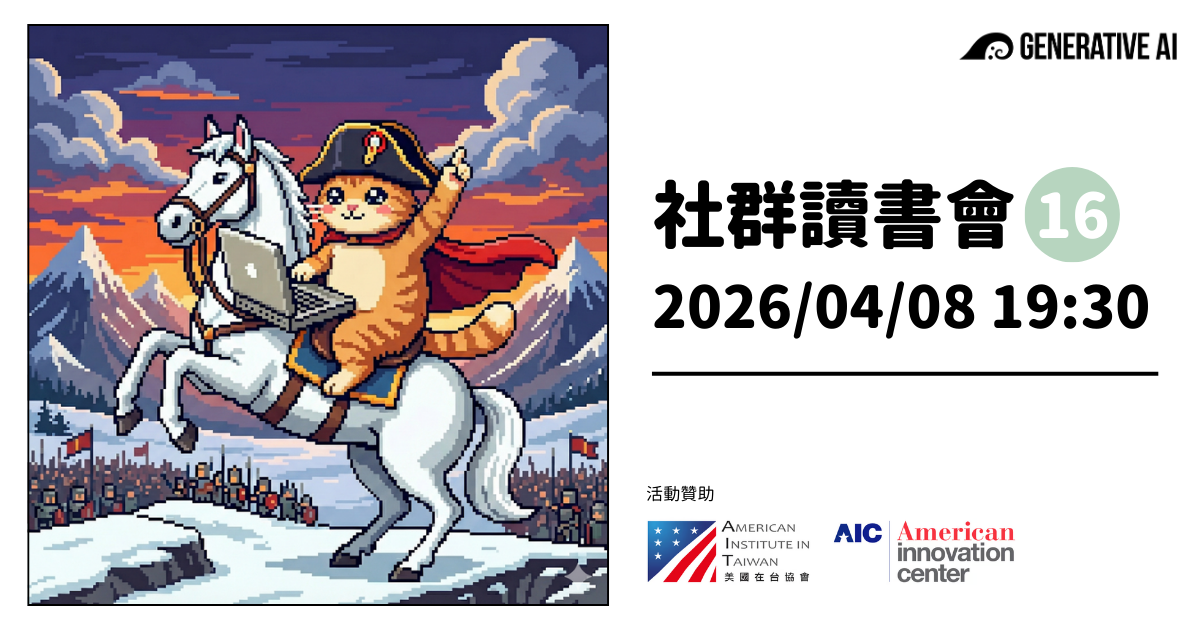 • 19:30 活動開始,每人簡短自我介紹,並分享你正在嘗試用 AI 解決什麼問題
