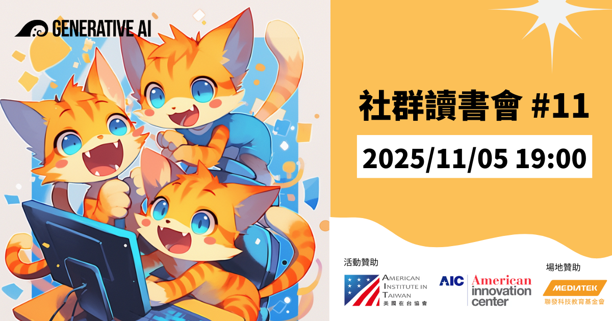 • 19:00 活動開始,每人簡短自我介紹,並分享你正在嘗試用 AI 解決什麼問題